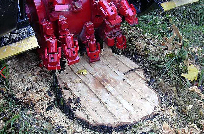 Фрезерование пня происходит без выкорчевывания, что исключает повреждение почвы, инженерных коммуникаций и асфальтового покрытия поблизости. Это особенно важно при работе в городской среде или на благоустроенных участках.