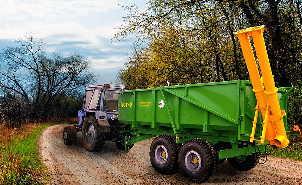 Приспособление ПНШ-1, монтируемое на полуприцепы самосвальные тракторные ПСТ-9 и ПСТ-12 производства ОАО "УКХ "Бобруйскагромаш", предназначено для механизированной засыпки зерна в сеялки из полуприцепа на полях во время посева зерновых культур, а также допускается использование для выгрузки намолоченного зерна на ток, перегрузки и просушки зерна. Оно состоит из съемного заднего борта, шнека производства Италии с приводом от гидромотора, механизма фиксации шнека в транспортном и рабочем положении. При загрузке зерно поступает в шнековый транспортер, вращаемый гидромотором, и далее в бункер сеялки. По мере расходования зерна кузов полуприцепа приподнимается.