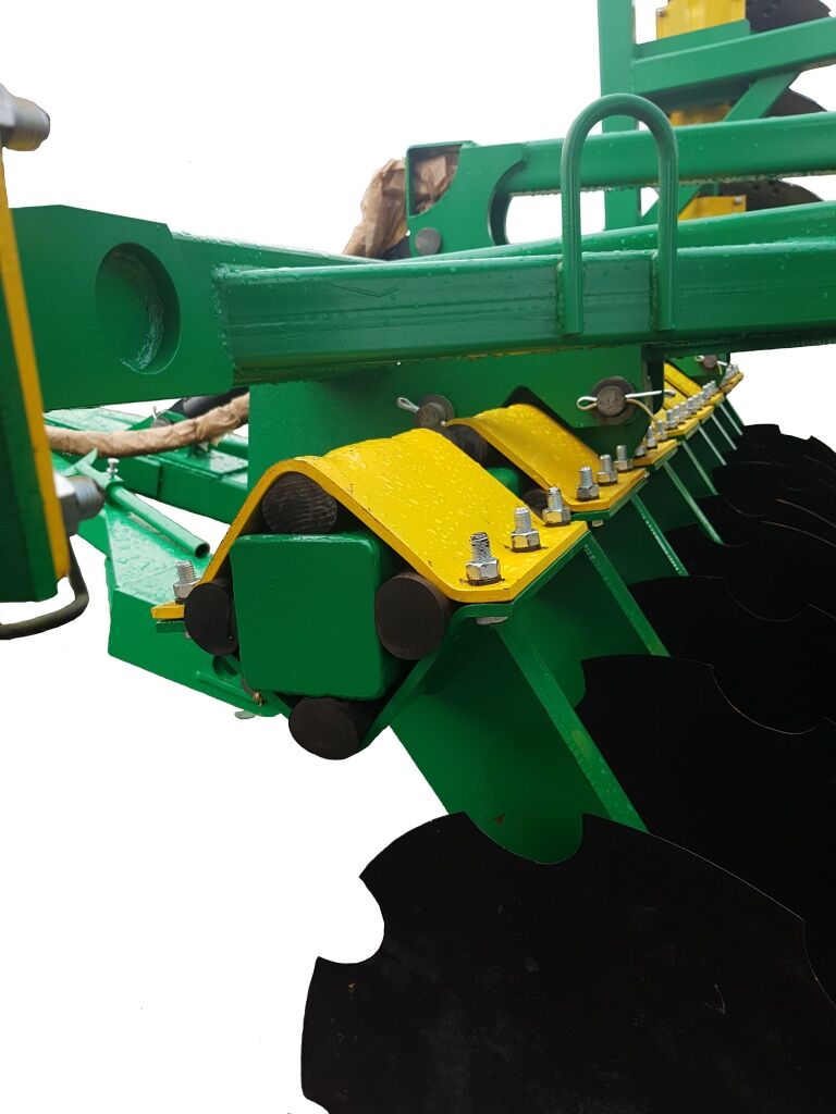 Каждый диск агрегата установлен на индивидуальной стойке, что позволяет агрегату работать на участках с большим количеством растительных остатков и сорняков, исключая наматывание растительных остатков на ось диска и забивание междискового пространства, а также обеспечивает высокую ремонтопригодность агрегата.