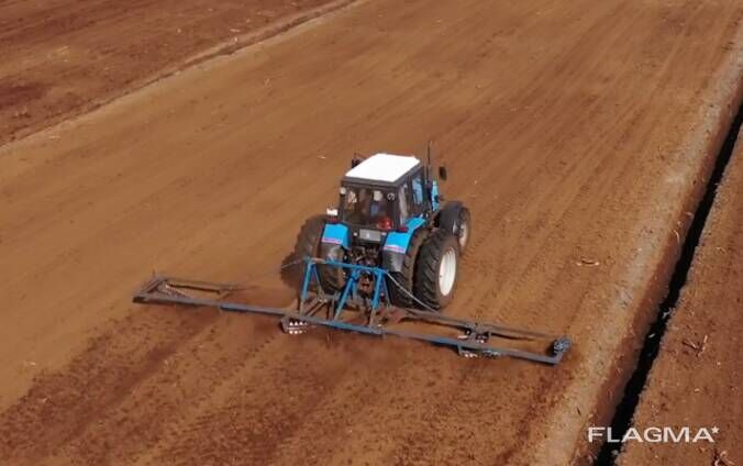 Фреза во время переездов, разворотов, движения задним ходом поднимается навесным устройством трактора, а боковые секции удерживаются цепями. Регулировка боковых секций, для точного