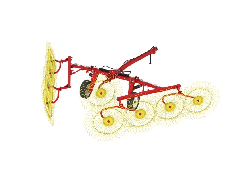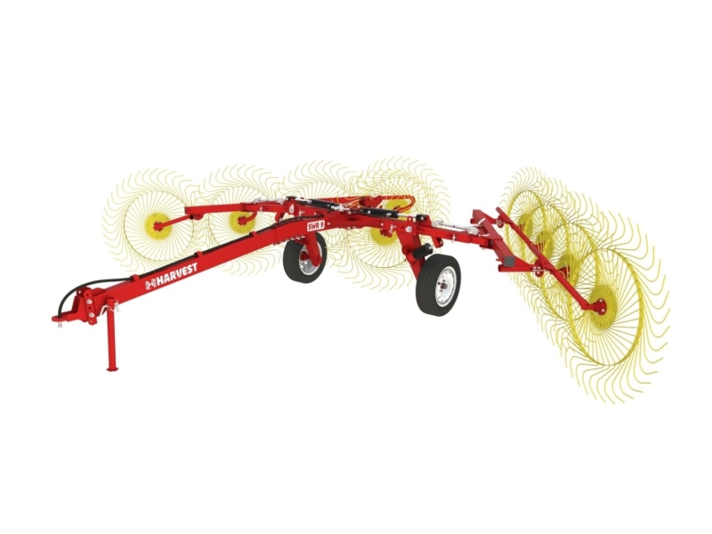 Высокопроизводительная линейка граблей SWR позволяет работать с большой сенажной массой. Второе поколение граблей SWR получило новую, более удобную систему перевода в положение ворошения. Грабли оборудованы двухцилиндровым гидравлическим механизмом перевода машины из рабочего положения в транспортное положение и попеременной работой секции. Механизм среднего колеса входит в комплект поставки. Грабли агрегатируются с тракторами тягового класса от 0,9 тс, дорожный просвет 0,75 м. Толщина граблин 7 мм.