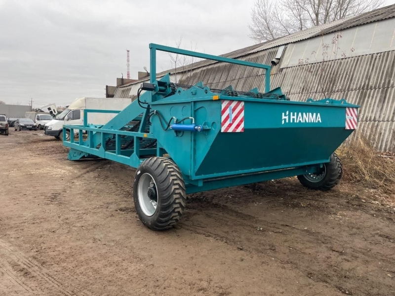 ✅ Комбайн картофелеуборочный четырёхрядный HANMA – предназначен для механизированного выкапывания картофеля, свеклы, моркови и других овощей при помощи трактора. Принцип работы копалки заключается в следующем: Привод транспортёра осуществляется за счет двух гидромоторов. Ножи выкапывают по четыре ряда картофеля, глубина выкапывания до 300 мм, общая ширина захвата четырех ножей – 3000 мм. Выкопанные клубни попадают на транспортерную ленту, которая оснащена очистной лентой для отсеивания мелких фракции почвы и клубней. После транспортерной ленты клубни попадают на сборочный бункер объемом – 3000 л (3 куб. м). Бункер за счет гидроцилиндров имеет возможность выгрузки назад.