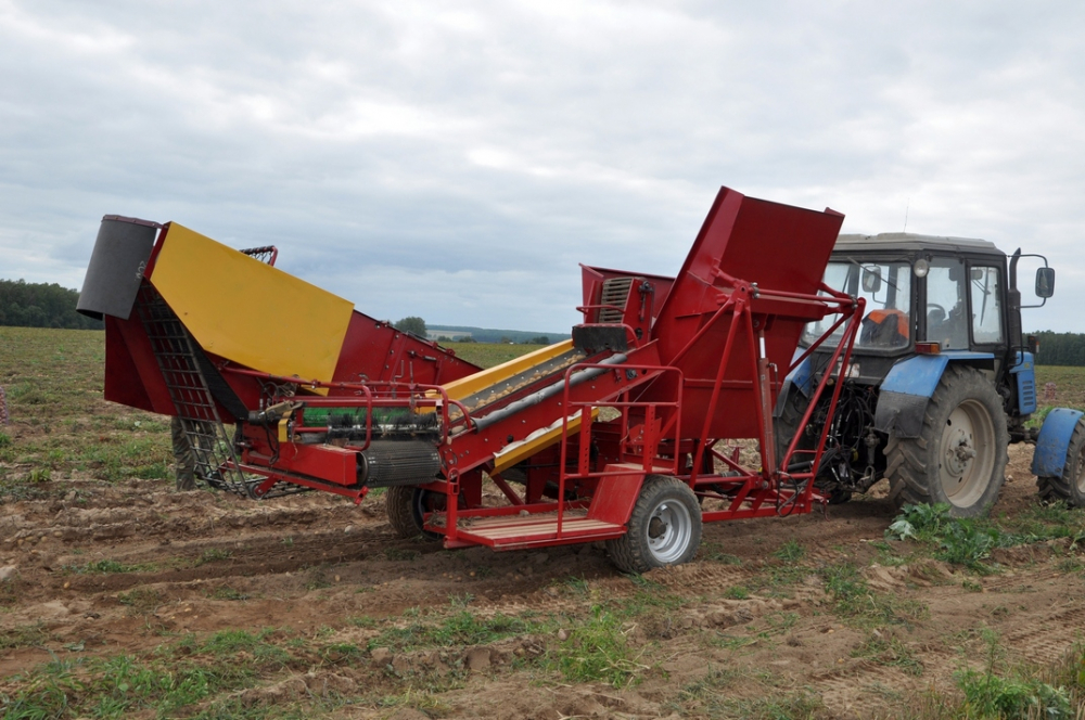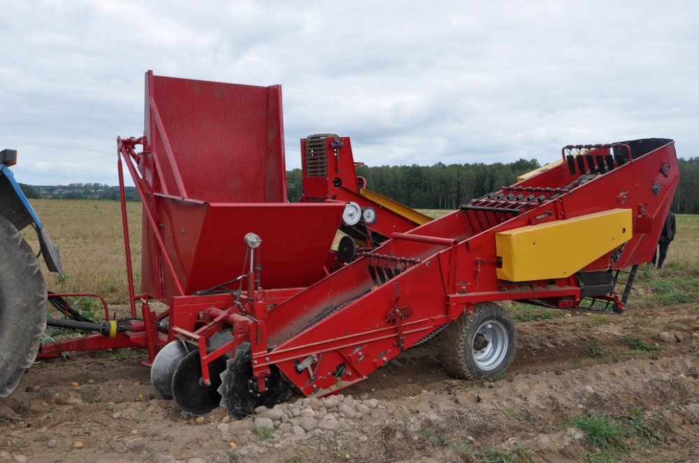 Комбайн картофелеуборочный ККУ-1 предназначен для механизированной уборки картофеля на легких и средних почвах, засоренных камнями до 28 т/га. Высокоэффективная система отделения ботвы, комков и камней благодаря усовершенствованным элеваторам и шиповым полотнам позволяет проводить уборку урожая в самых неблагоприятных условиях с минимальным повреждением клубней.
