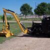 Благодаря гидравлическому манипулятору с вылет стрелы 5,5 м от центра погрузчика до центра рабочей головы позволяет эффективно дотягиваться до нужных участков. Удобны при проведении работ за ограждениями барьерного типа, обрезки веток и формовки крон деревьев.