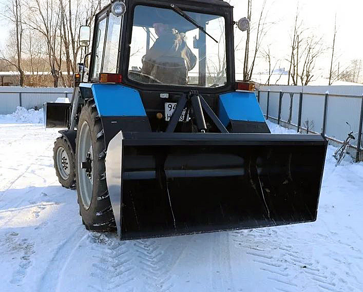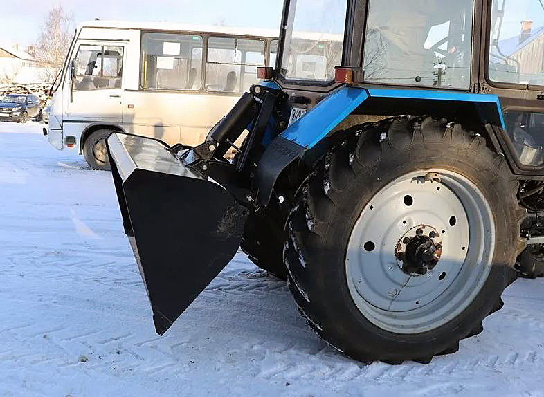 С его помощью можно выполнять погрузку и разгрузку, выравнивание и транспортировку песка, щебня, гравия и других материалов, а в зимнее время использовать для очистки от снега, в том числе и затвердевшего снега и наледи.