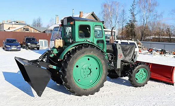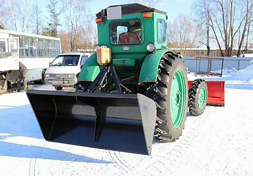 С его помощью можно выполнять погрузку и разгрузку, выравнивание и транспортировку песка, щебня, гравия и других материалов, а в зимнее время использовать для очистки от снега, в том числе и затвердевшего снега и наледи.