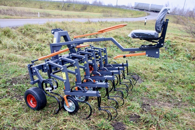 Основное оборудование - гусиные лапки, пружинные когти и трехконечные зубья позволяют производить механическое удаление сорняка. Положение рабочих секций свободно регулируется с помощью рамы. Система рулевого управления позволяет точно направлять рабочие органы между рядами.