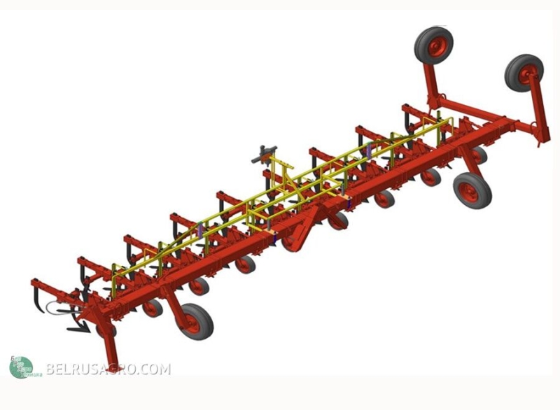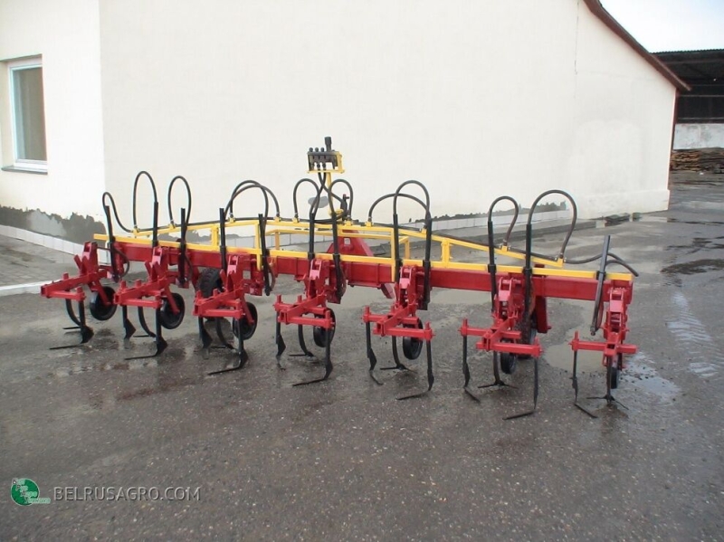 Культиватор навесной для междурядной обработки почвы КРН-5,6 с устройством для ленточного внесения гербицидов (КАСС) предназначен для междурядной обработки 8-ми рядных посевов кукурузы, подсолнечника, клещевины и других пропашных культур, высеянных с междурядьем 600, 700, 900 мм, с полным подрезанием сорной растительности, качественным рыхлением почвы с одновременным внесением сыпучих минеральных удобрений. Обеспечивает качественное рыхление почвы в междурядьях на заданную глубину с уничтожением сорняков, паралелограммная подвеска секций рабочих органов обеспечивает копирование рельефа почвы, шины атмосферного давления и обрезиненные катки культиватора обеспечивают их самоочистку от налипшей грязи, предусмотрен вариант использования культиватора для сплошной культивации с использованием лап плоскорежущих односторонних, наличие транспортного устройства позволяет транспортировать по дорогам общего назначения с габаритом 2,5 м.Основная комплектация: лапы плоскорежущие односторонние (правые и левые), лапы стрельчатые.