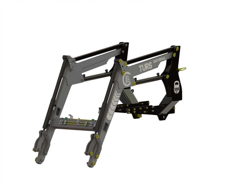 Фронтальный погрузчик TURS Universal специально создан на базе погрузчика TURS-1000 и обладая сходными техническими характеристиками, отличается возможностью более гибко подобрать необходимый набор опционального оснащения. Пользователь может выбрать только те опции, которые ему действительно необходимы в повседневной работе и не переплачивать за используемые редко или не используемые вовсе. За счет такой гибкости конечная стоимость продукта может быть существенно снижена при сохранении всех технических преимуществ основной модели. Данная модификация в базовой комплектации оснащена системой быстросъема погрузчика, еврорамкой и усиленными гидроцилиндрами 80x40, а так же дополнительно может быть доукомплектована следующими опциями: