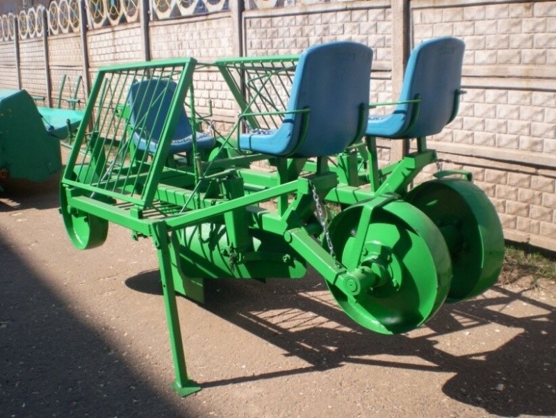 Машина для посадки саженцев плодовых деревьев и кустарников МПС – 2М (в дальнейшем - машина). Глубина посадки 350мм, удельное сопротивление почвы до 0.1 МПа (1кгc/см2), влажностью обрабатываемого слоя до 30%, уклоном поля до 8°. Машина агрегатируется с тракторами «Беларус МТЗ-80». Саженцы для посадки укладываются на площадку машины по обе стороны. На специальные сидения усаживаются 2-3 оператора, которые выполняют следующие функции: Один оператор непосредственно опускает в борозду саженцы, два другие поочередно подают первому саженцы непосредственно в руки, забирая (снимая) саженцы с площадки машины. В процессе движения агрегата после установки саженца в борозду с помощью двух отвалов (загортывателей) происходит засыпка борозды. Задние колеса уплотняют грунт в зоне корневища. Площадь (поле) для посадки предварительно можно промаркировать линиями (мелкими бороздами) для равномерного расположения деревьев, кустарников (саженцев). Машина МПС-2М может быть использована и для посадки виноградников.