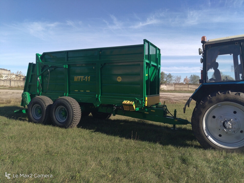 Машина МТТ-11 оснащена подвижным задним бортом, подъем и опускание которого осуществляется гидравлическим приводом с кабины трактора.