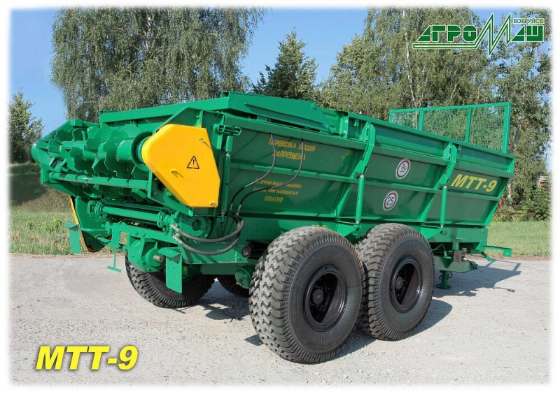 Машина МТТ-9 предназначена для транспортировки и сплошного поверхностного внесения твердых органических удобрений.