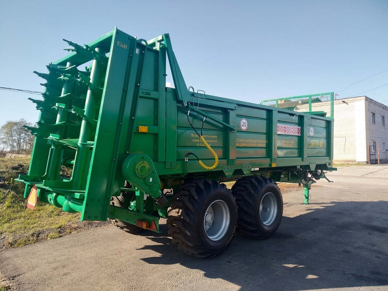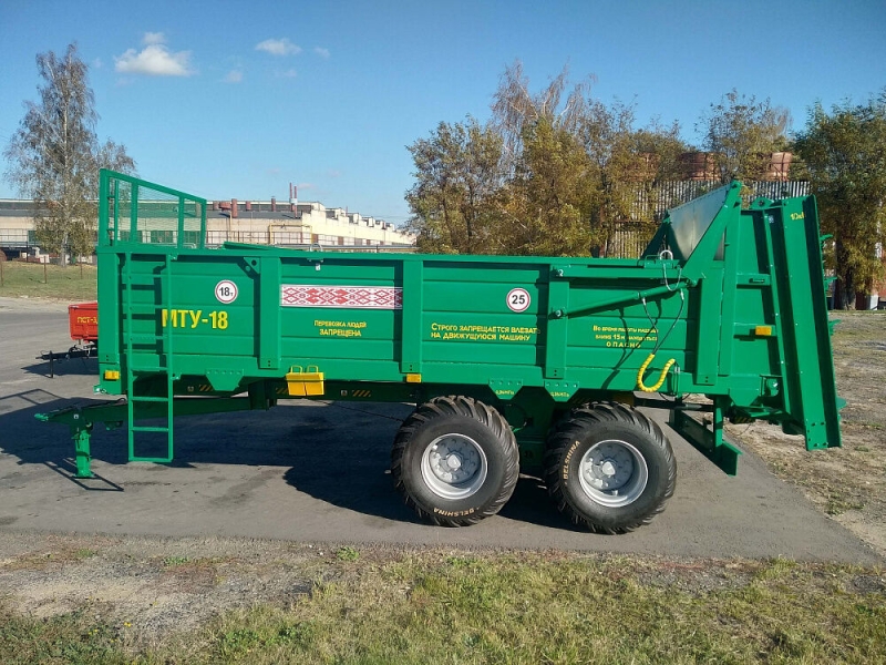 Машина МТУ-18 предназначена для транспортировки и сплошного поверхностного внесения твердых органических удобрений, а при снятом разбрасывающем органе - для перевозки других сельскохозяйственных грузов с разгрузкой конвейером назад.