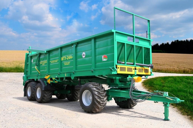 Машина МТУ-24А-1 предназначена для транспортировки и сплошного поверхностного внесения твердых органических удобрений с трехостной ходовой системой, а при снятом разбрасывающем органе - для перевозки других сельскохозяйственных грузов с разгрузкой конвейером назад.
