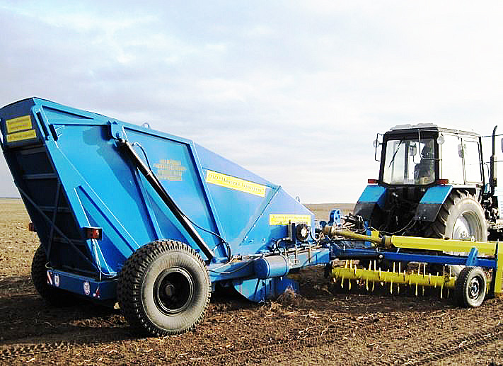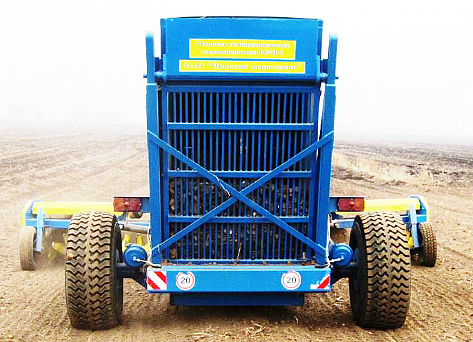 - Накопительный бункер - конструкция накопительного бункера позволяет осуществлять выгрузку камней не только на краю поля, но и в тракторные прицепы и полуприцепы. Объем бункера составляет порядка 2,5 м3.