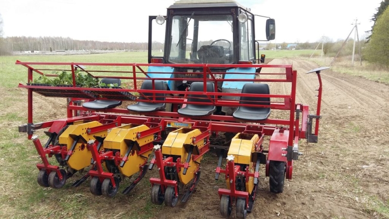 - установка посадочной секции на параллелограммной подвеске позволяет производить высадку рассады на необходимую и одинаковую глубину с точным копированием поверхности почвы, что обеспечивает полное заглубление корней растений.