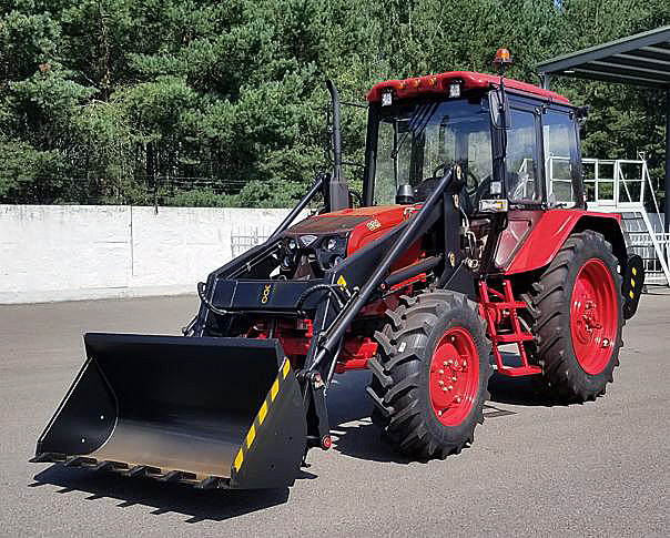 · Переднее навесное оборудование: Установлен погрузчик П10М-1. Управление стрелой и ковшом осуществляется удобными рычагами из кабины (схема управления размещена на специальной табличке внутри).