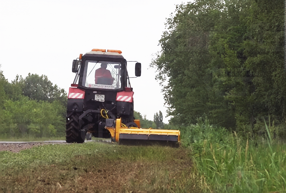 Косилка мульчерная дорожная -предназначена для скашивания травы, кустарников и небольших деревьев на обочинах дорог и верхних частях откосов земляного полотна, разделительных полосах, открытых площадках. Функция мульчировщика-измельчителя позволяет сформировать слой биоматериала, препятствующего распространению растительности.