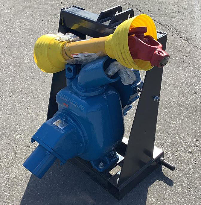 Для пуска насоса необходимо подсоединить и затянуть хомотом всасывающие и напорные рукава, завернуть пробку для слива воды из корпуса (если она отвернута), после чего наполнить корпус водой. Центробежное рабочее колесо приводится от вала отбора мощности (ВОМ) через идущий в комплекте карданный вал. Насос собран в одном блоке с мультипликатором (повышающей передачей), который позволяет раскрутить вал рабочего колеса насоса до необходимых для его оптимальной работы трёх тысяч оборотов в минуту. Всё смонтировано на подрамнике, легко устанавливаемом на трактор Беларус или аналоги.