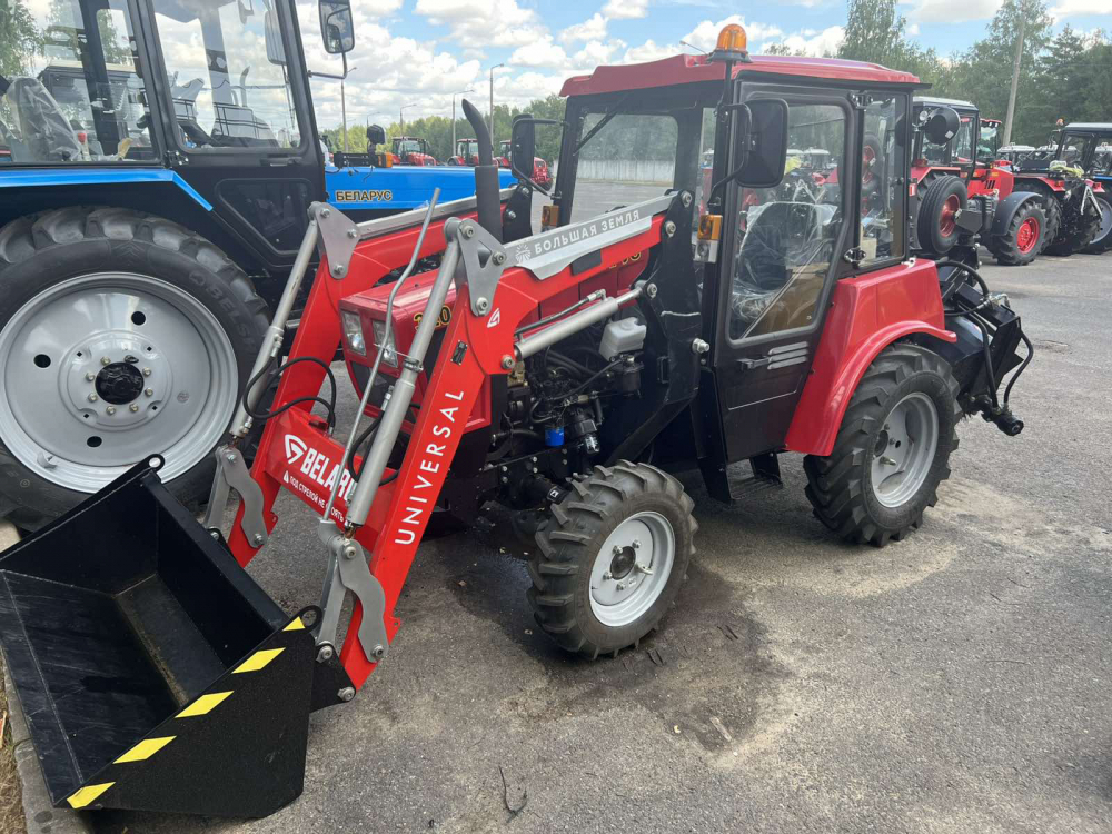 Навесной погрузчик «Универсал 400» (КУН) с ковшом 0,4м3. на трактор (МТЗ) «Беларус-320/422» - предназначен для легких погрузочно-разгрузочных работ, перемещения и погрузки различных сыпучих материалов (снег, песок, земля, навоз), сена, а также для коммунальных работ, используя сменные рабочие органы (ковши, вилы, отвалы).