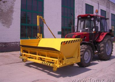 Передняя навеска представляет собой металлоконструкцию, состоящую из двух продольных лонжеронов, монтируемых на полураму базового трактора, и двух поперечных верхних и нижних балок. Также в комплект передней навески входят два рычага, посредством которых производится монтаж приемного бункера с отвалом-планировщиком на продольные лонжероны, а также упорная балка. На верхнюю поперечную балку монтируется гидроцилиндр подъема приемного бункера, а на нижнюю поперечную балку монтируется упорная балка.