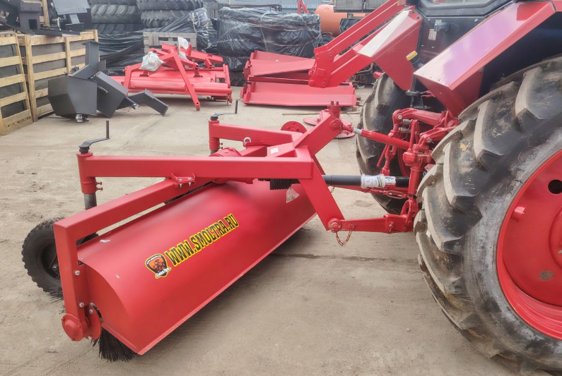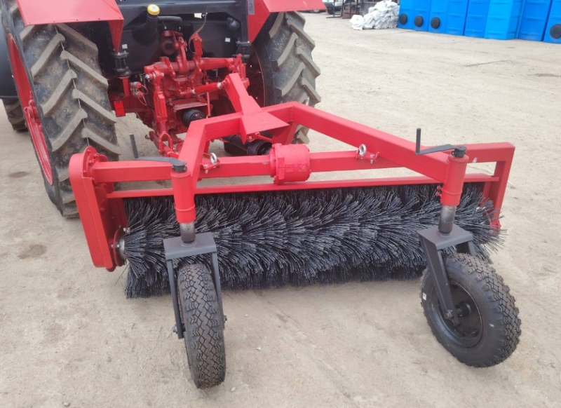 Для предотвращения забрасывания трактор грязью при вращении щеточного вала оборудование имеет защитный козырек, который жестко крепится болтами к плите цепной передачи с левой стороны и к трубе костыля с правой стороны (см. Рисунок 8).