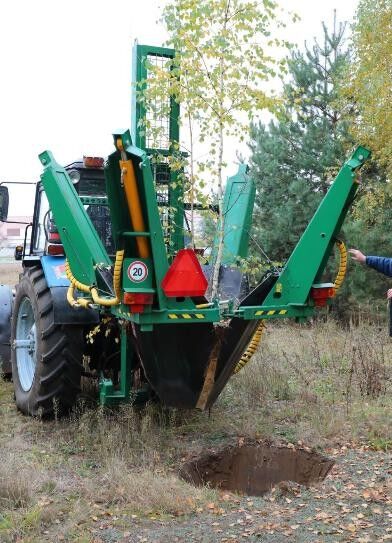 Пересадчик деревьев ПД-1 -предназначен для подготовки посадочных ям с при- корневым комомпочвы, транспортировки извлечённого дерева к месту посадки или упаковки в спецтару и, собственно, установки пересаживаемого дерева с при- корневым комом почвы в подготовленную яму.