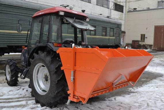 Пескоразбрасыватель на МТЗ и другие трактора монтируется на стандартную трехточечную навеску трактора и подключается к его гидравлической системе. Оборудование оснащается мощным гидромотором, который активирует работу маятникового механизма вместе с разбрасывающей пластиной.