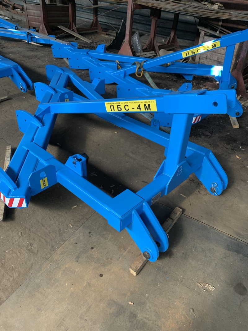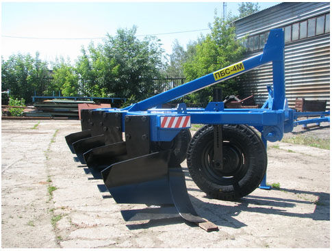 Плуг скоростной ПБС-4 предназначен для пахоты под зерновые и технические культуры, на глубину до 30 см почв, не засорённых камнями, плитняком и другими препятствиями, с удельным сопротивлением до 0,1 МПа, твёрдостью почвы до 4 МПа и влажностью до 30%. Так же плуг отдельно комплектуется чизельными стойками. Обслуживает агрегат тракторист.