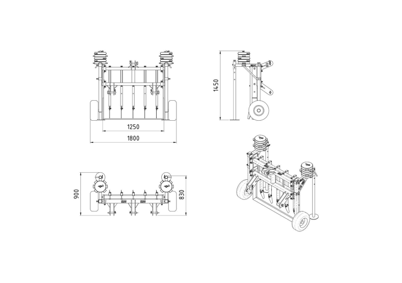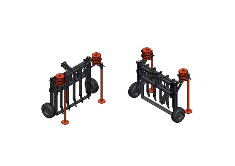 Рабочая глубина регулируется с помощью колес и составляет максимум 380 мм. Они производятся в трех вариантах рабочей ширины. Рабочий нож является сменным элементом с возможностью установки кронштейнов различной ширины с использованием одной и той же рамы. Вертикальные ножи для боковой обрезки черенков регулируются по положению. Для более стабильной работы машина оснащена металлическими грузами, которые можно использовать в зависимости от глубины обработки и влажности почвы.