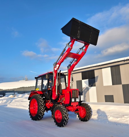 В наличии. Время установки одним человеком — 3 минуты. Для этого требуется подъехать на тракторе к погрузчику. Далее: 1. Подсоединить быстроразъёмные гидравлические муфты. 2. С помощью гидравлики осуществить установку пяток стрелы в подрамники. 3. Зафиксировать (выйти из кабины и установить фиксатор в стопор вручную). Установить распорку и сложить домкраты. Демонтаж производится в обратном порядке. |
