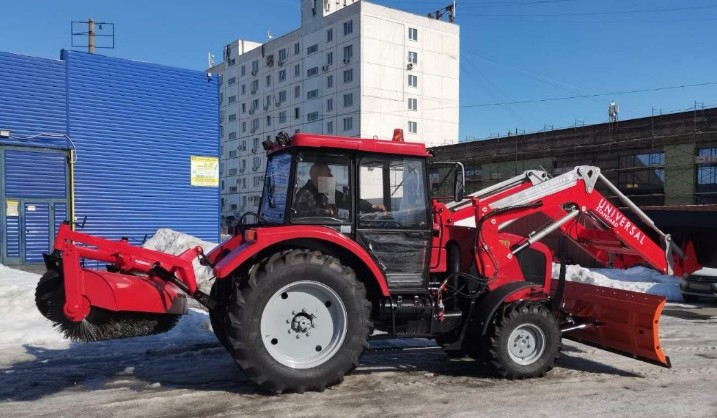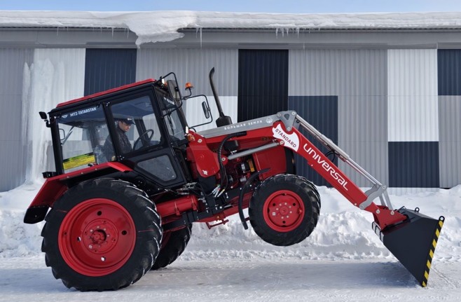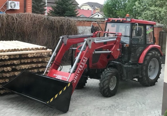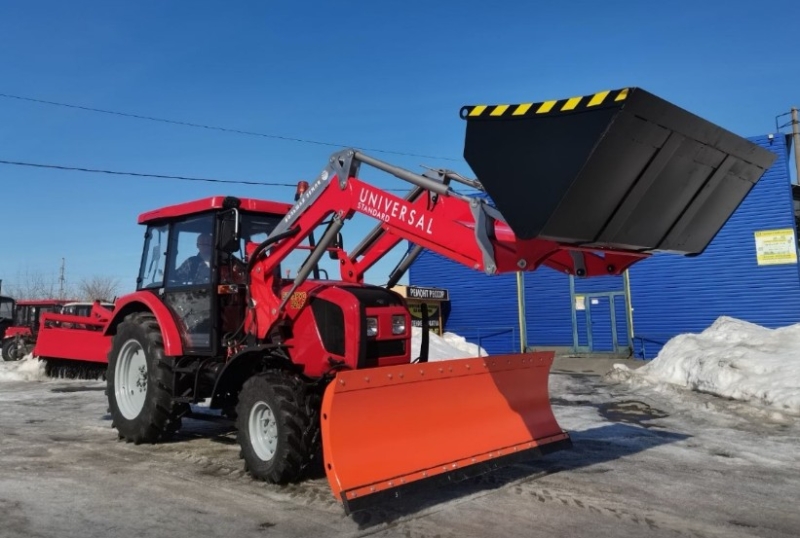 Погрузчик навесной фронтальный «Универсал Standart» с ковшом 0,8м3.- предназначен для погрузочно-разгрузочных работ, транспортировки и укладки различных материалов, таких как грунт, песок, щебень, навоз, минеральные удобрения и другие сельскохозяйственные грузы. Он также может использоваться для выполнения землеройных и планировочных работ, таких как уборка строительных площадок от мусора или снега, засыпка ям и рытье траншей, а также для перевозки крупногабаритных грузов на небольшие расстояния.