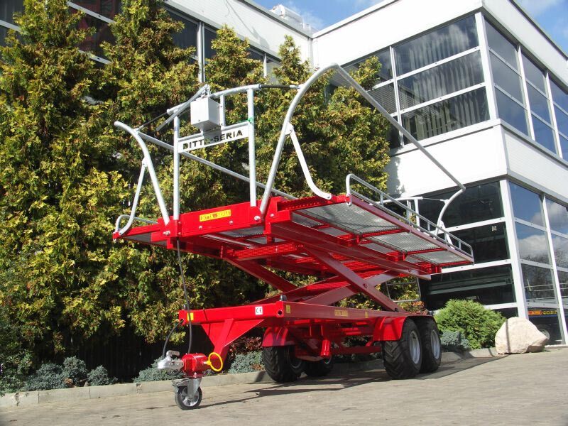 Прицеп платформа садовая DS-P - предназначена для выполнения всевозможных высотных работ в саду, то есть сбора фруктов, обрезки веток и других работ. Это новый тип садовой платформы с инновационным техническим решением раскладки боковин платформы, благодаря которому при выдвижении нижних подмостков одновременно раскладываются верхние поручни. Предлагаемая платформа производится в одноосной и двуосной версиях.
