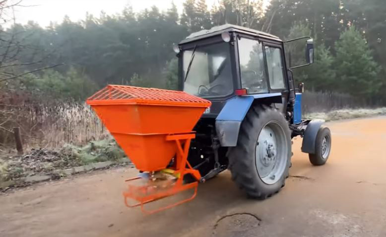 Гидравлический привод заслонки позволяет, не выходя из кабины трактора, прекратить высып смеси при разворотах, и в местах повышенной опасности разброса, к примеру: в местах скопления людей и зонах припаркованных автомобилей.