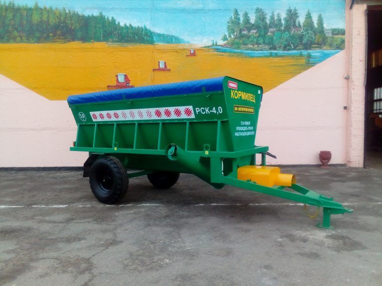 | Предназначен для перевозки и раздачи сыпучих кормов с выгрузкой на одну сторону в кормушки на молочно-товарных фермах. Может агрегатироваться с тракторами тягового класса 1,4; 0,9; 0,6 (МТЗ 310-320). |