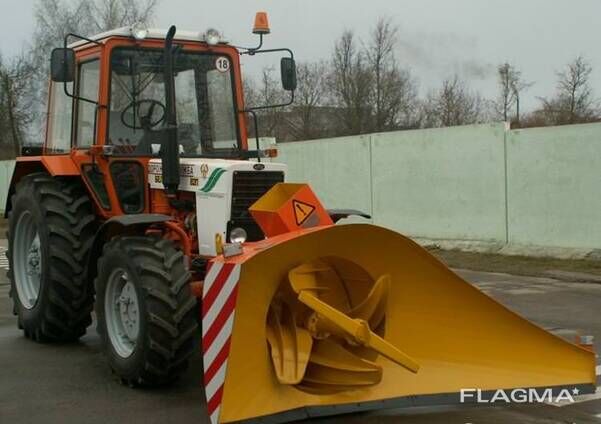 Роторный снегоочиститель - предназначен для уборки эвакуации за предел проезжей части снежных бордюров и заносов, образующихся вдоль автомобильных дорог в зимнее время вне населенных пунктов, а также для погрузки снежной массы в кузов самосвала в населенных пунктах. Изделие представляет собой навесное оборудование, монтируемое на трактор (базовая машина должна быть оснащена понижающим редуктором -ходоуменшителем) тягового класса 1,4. Основным базовым трактором является Беларус
