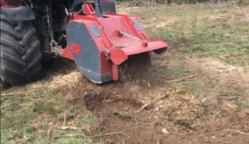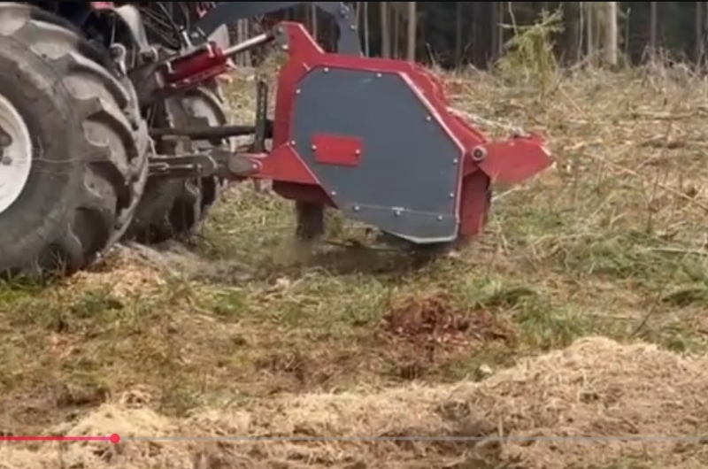- Фрезерование и удаление пней и корней: Заглубляется в почву (до 25-30 см), измельчая пни и корневую систему, превращая их в органическую мульчу.