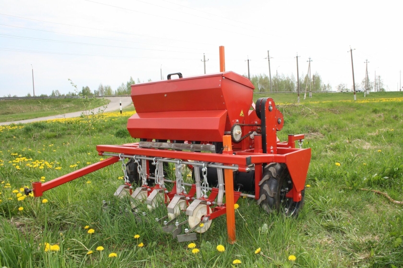 устанавливаются при помощи зубчатых и цепных передач, а также при помощи высеивающего устройства с механизмом регулировки глубины и силы прижима прижимным и копирующим колесами.
