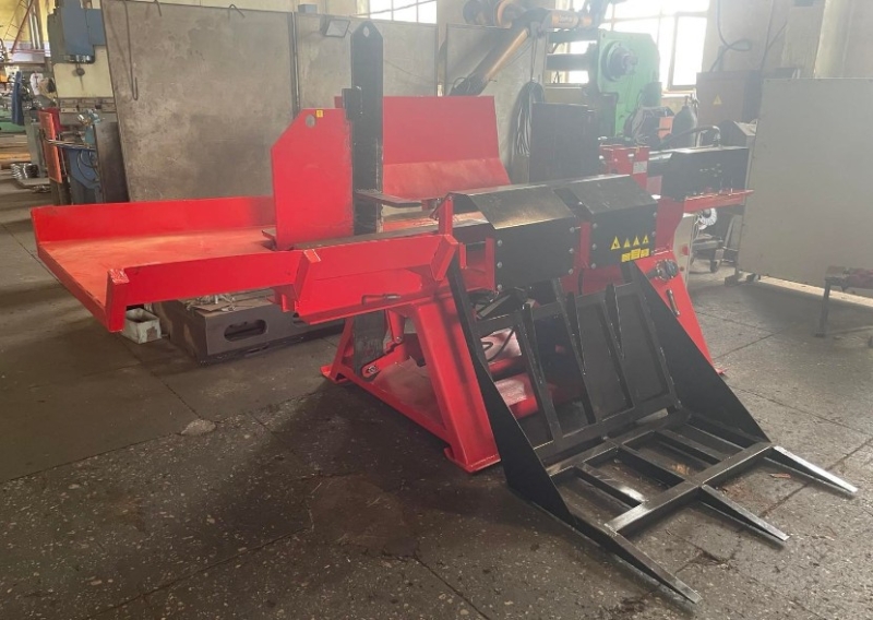 Подъёмник - крепится к основной раме замками, нижняя часть которых приварена к раме. Ось подъемника имеет проточки, в которые установлены бронзовые вкладыши. В верхней части замков установлены масленки, для шприцевания замков в процессе эксплуатации. Привод механизма подъема гидравлический. Приходит в движение за счёт работы цилиндра. Подъёмник служит для подъёма бревна с площадки в рабочую зону колуна.