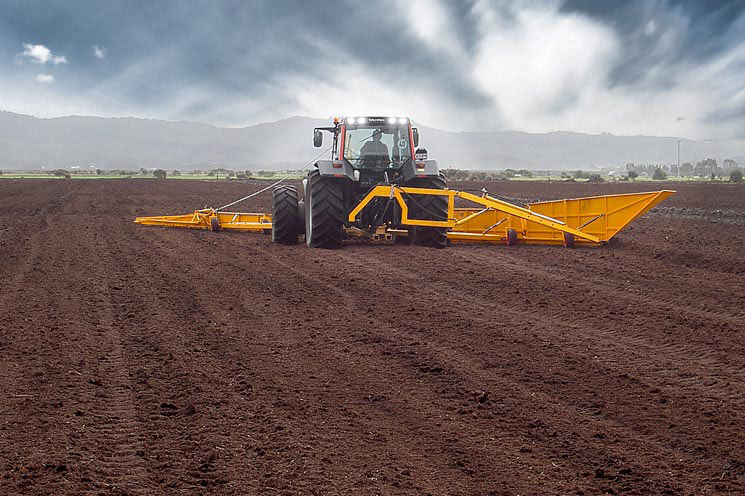 Валкователь фрезерного торфа допускает совместную эксплуатацию с другим навесным элементом, производственной фрезой, осуществляющей предварительное рыхление разрабатываемого участка.