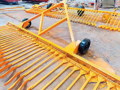 Ворошилка фрезерного торфа ФТС-9,6- предназначена для переворачивания сфрезерованного слоя торфяной крошки на 180° с одновременным рифлением его поверхности. Агрегатируется с трактором ДТ-75. Рабочие элементы типа лопатка. Количество рабочих органов 2 шт.