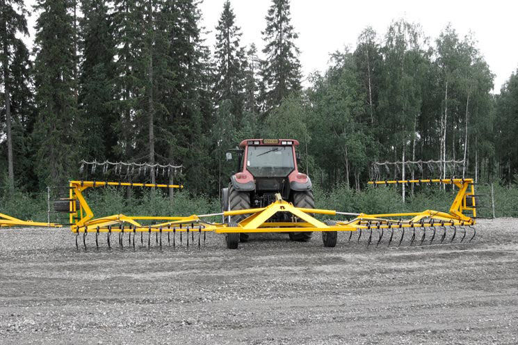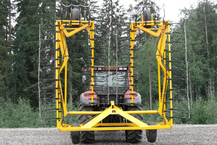 - Между зубьями изделия натянуты специальные цепи. Проскальзывая по поверхности почвы под кусковым торфом, лежащим сверху, они осуществляют эффективное ворошение.