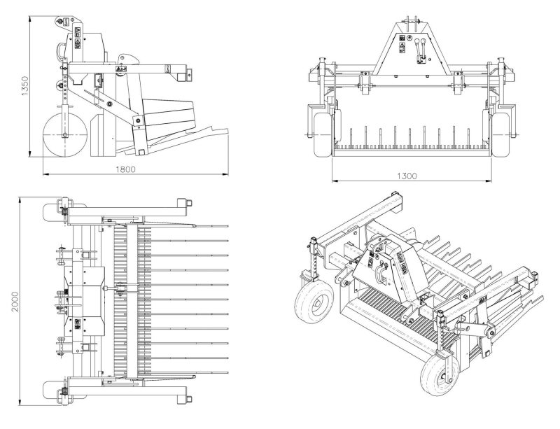 Предназначен для вспашки саженцев с одновременным вытряхиванием почвы из корневой системы. Неподвижный нож оснащен элементами решетки, которые поднимают скошенную траву вверх. Подвижные решетчатые элементы устанавливаются между неподвижными решетчатыми элементами и вытряхивают почву из корневой системы. Узел опорного колеса позволяет регулировать глубину обработки до 380 мм. Три ширины захвата, три расстояния между прутьями на рабочей решетке и два типа привода - механический от ВОМ трактора или гидравлический от внешней гидравлической системы трактора позволяют создать любую конфигурацию лемеха.