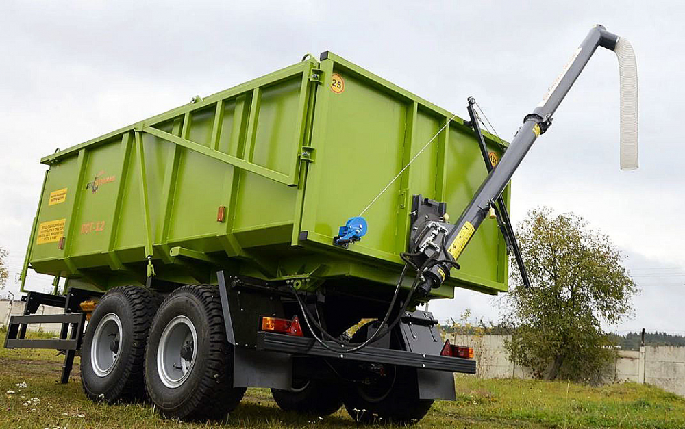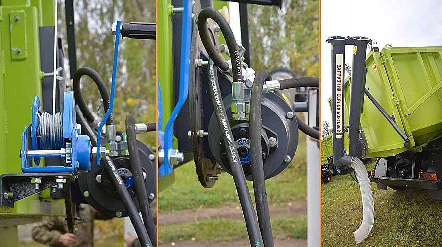 Загрузчик бортовой ЗБ-170-4 для полуприцепов ПСТ-9, ПСТ-12 - предназначен для загрузки посевных агрегатов семенами зерновых, зернобобовых, а также загрузки гранулированными удобрениями посевных агрегатов и машин для внесения минеральных удобрений. Загрузчик представляет собой приспособление, устанавливаемое взамен заднего борта кузова автомобилей. В состав оборудования входит: фланец прицепа, шнек складной, крепление лебёдки (с самой лебёдкой), стойка направляющей, направляющая и труба гофрированная.