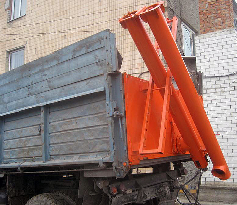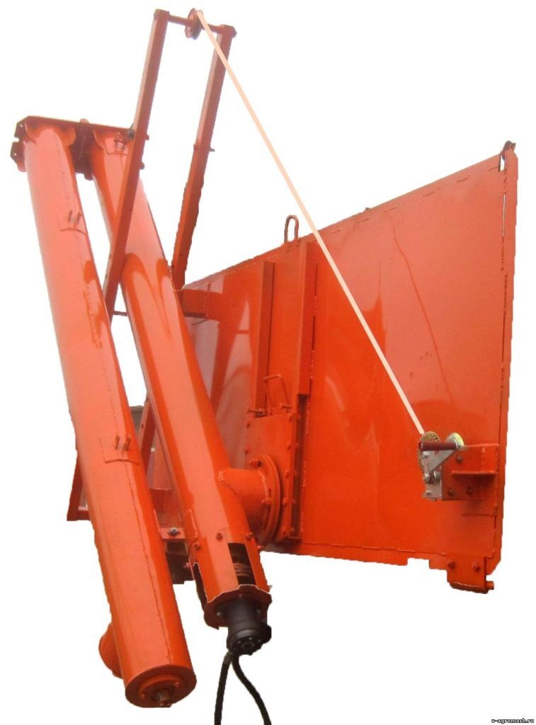 В конструкции загрузчика использован гидропривод, полностью адаптированный к отечественной автотракторной технике. В транспортном положении шнек загрузчика складывается по диагонали заднего борта платформы самосвала. Для более удобной эксплуатации. в конструкции шнекового транспортера используются регулируемая шиберная заслонка, перекрывающая при необходимости поток зерна или удобрений.