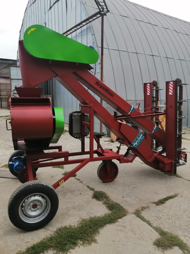 Характерной особенностью зернометателя является возможность загрузки складов с высотой складирования зернового материала до 6 м, а также формирование высоких буртов на площадках открытых токов.